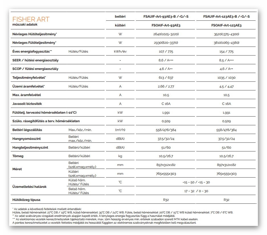 A Fisher FSAUIF-ART-123AE3 ART Antracit Inverteres Split klíma fontos tulajdonságai: