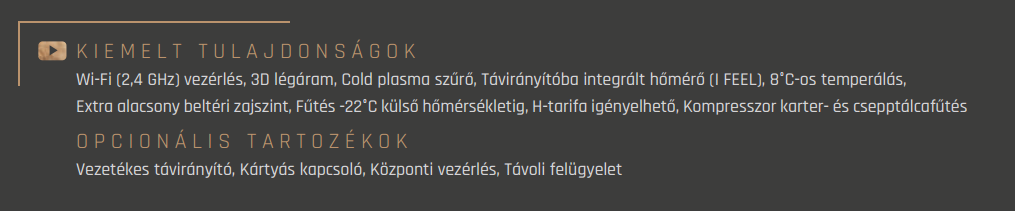 • Kivitel : Oldalfali inverteres klíma