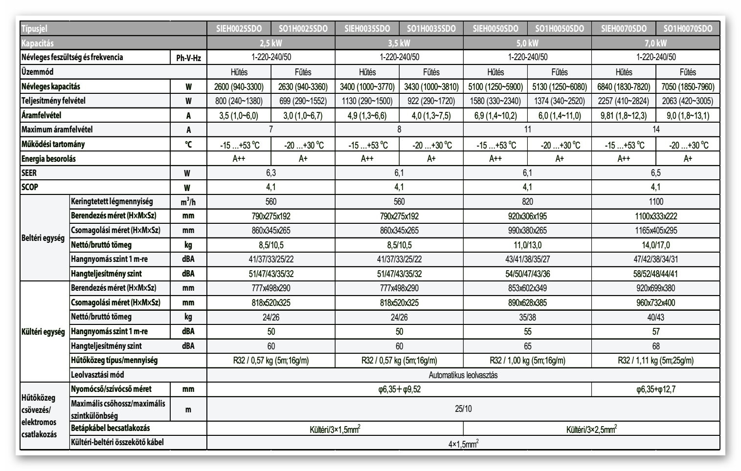 A Polar SIEH0025SDOB/SO1H0025SDOB Optimum Inverteres Split klíma fontos tulajdonságai: